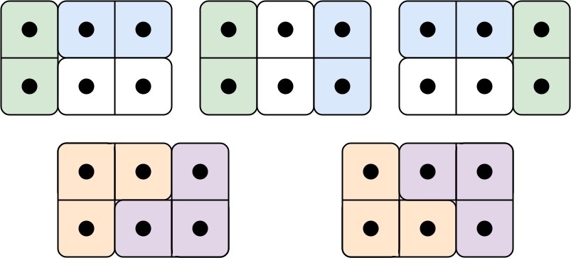 In a tiling, every square must be covered by a tile. Two tilings are different if and only if there are two 4-directionally adjacent cells on the board such that exactly one of the tilings has both squares occupied by a tile.