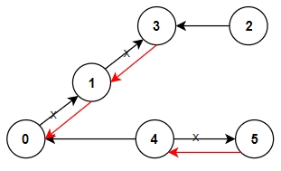 Explanation: Change the direction of edges show in red such that each node can reach the node 0 (capital).Idea